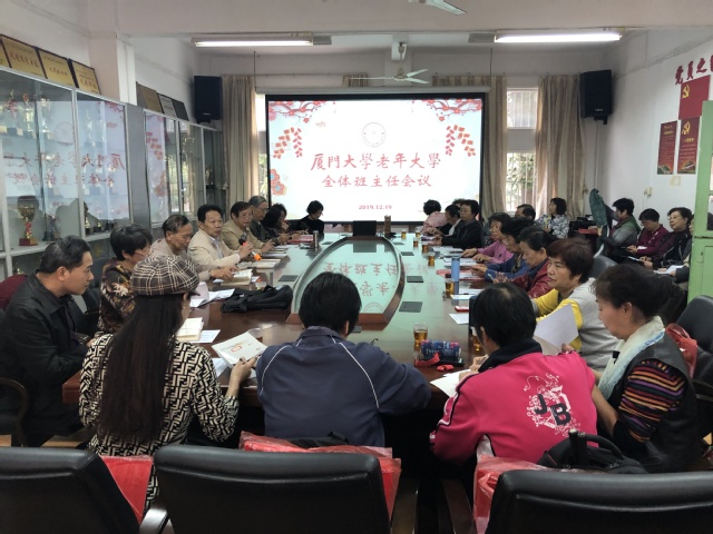 12月19日上午,厦大老年大学在南光八二楼会议室召开全体班主任会议,布置新学期招生报名工作。老年大学校长陈国凤,副校长、离退休工作处处长戴岩,离退休工作处副处长周一钦,副校长李稻根、于力、曾安及各班班主任参加会议。