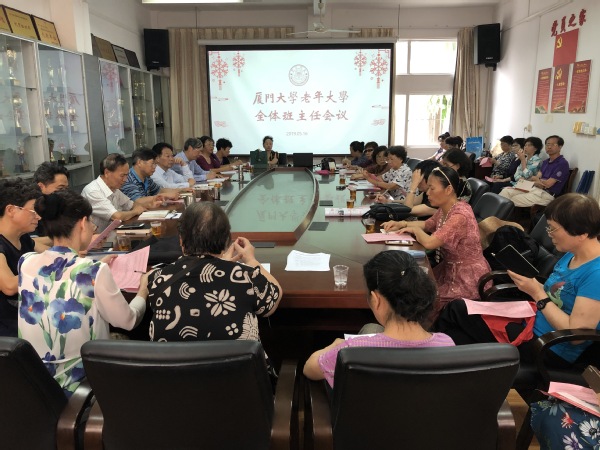 5月16日上午,厦大老年大学在南光八二楼会议室召开全体班主任会议,布置新学期招生报名工作。老年大学校长陈国凤,副校长、离退休工作处处长戴岩,离退休工作处副处长周一钦,副校长李稻根、于力、曾安及各班班主任参加会议。