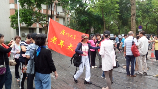 10月11日上午,厦大老年大学和老体协共同举办重阳登山活动,此次登山的主题是“老有所健、幸福老年”,通过活动达到“我运动,我健康,我快乐”的目的。8点30分,在老年大学校长陈国凤发出“向健康快乐出发”的致辞后,老年大学学员和老体协登山队员从矿泉水厂桥头出发,声势浩荡走向五老峰国防园。老年大学和老体协的红旗迎风飘扬,不时有优美的歌声从队伍中传出,传递着愉悦的心情。