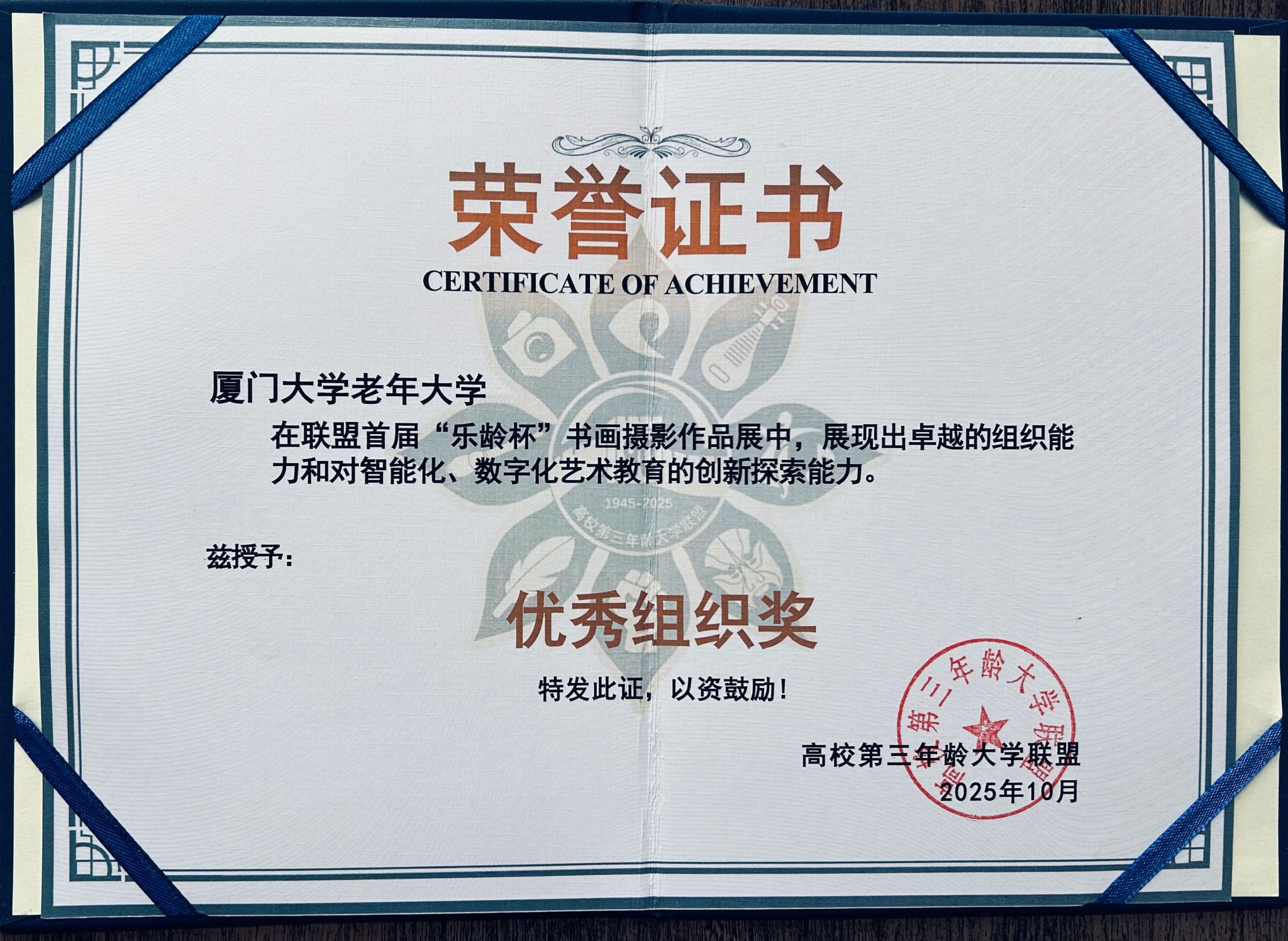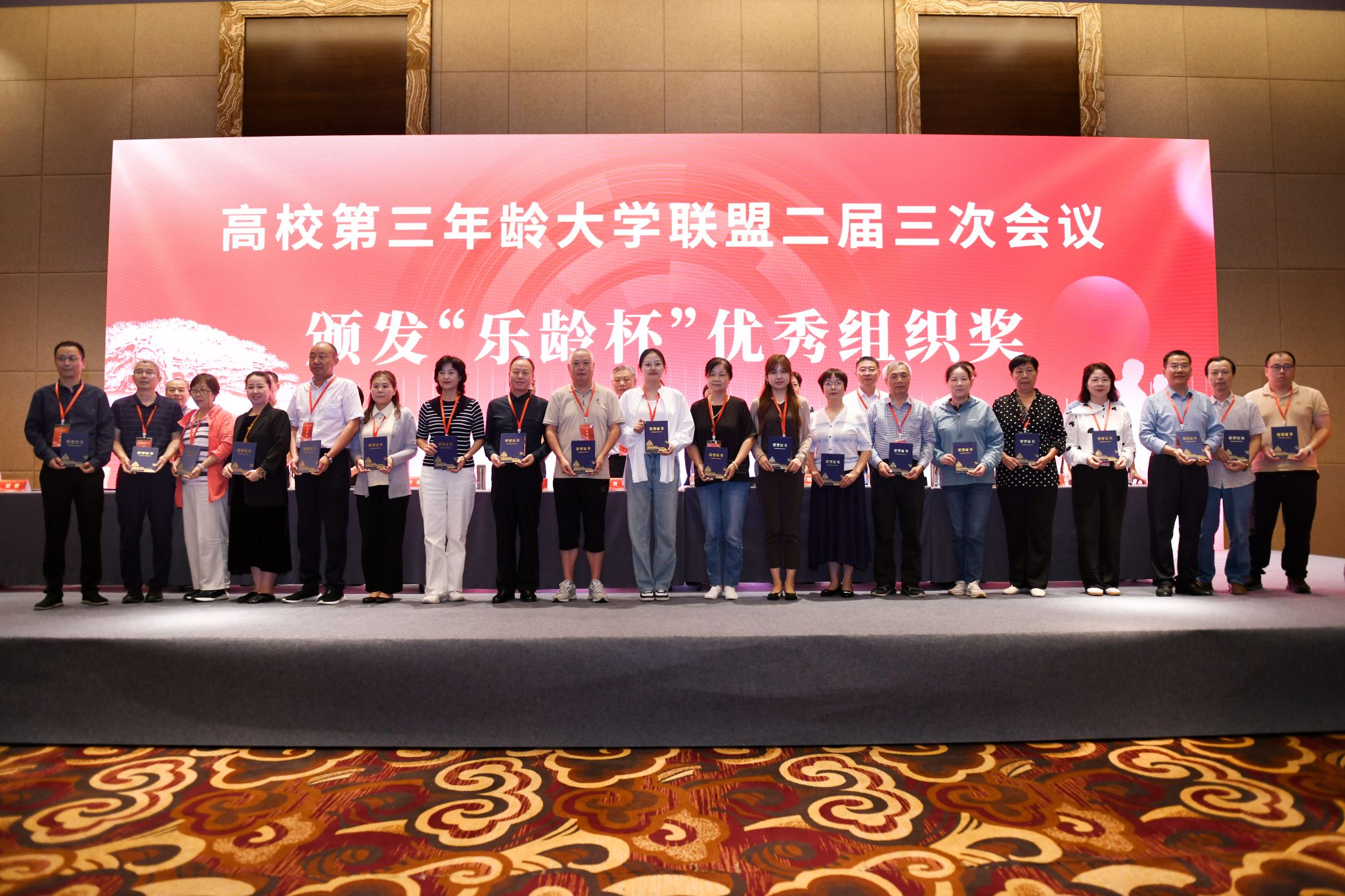 联盟授于厦门大学老年大学等36所院校首届“乐龄杯”优秀组织奖。戴岩副校长代表厦大老年大学上台领奖。