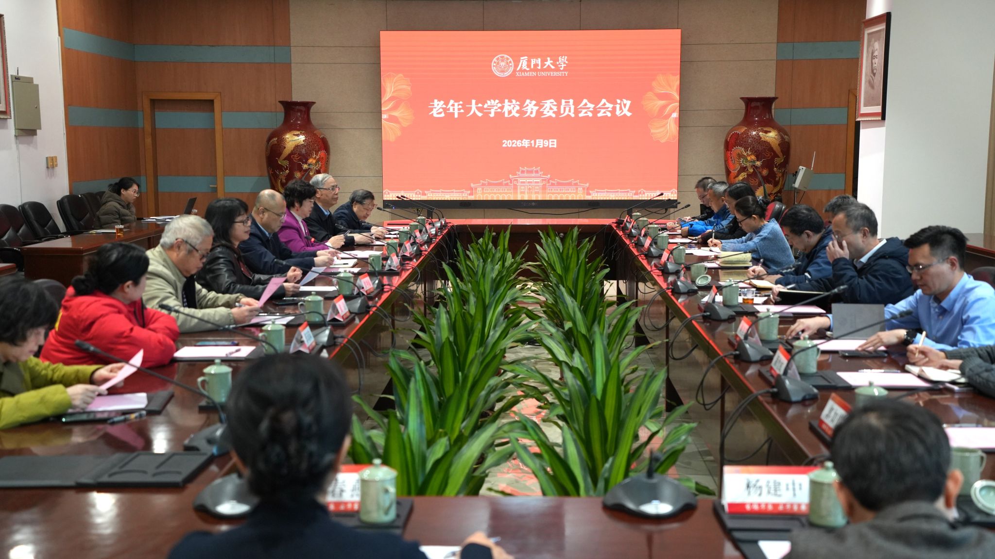 1月9日下午,厦门大学老年大学2025年度校务委员会会议在颂恩楼215会议室召开。校党委常务副书记林东伟,老年大学校长邓朝晖,校务委员会各成员单位负责人及委员参会。会议由离退休工作部部长曾坤瑜主持。